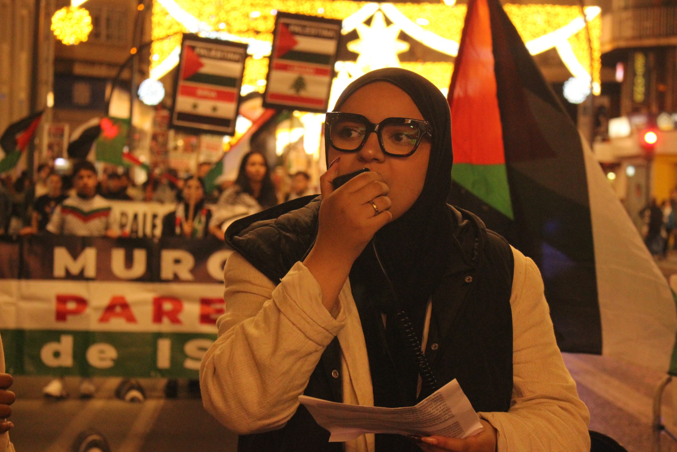 “¡Embargo de armas a Israel! ¡Fin a todas las relaciones! ¡Boicot a Israel! ¡Viva Palestina libre!”