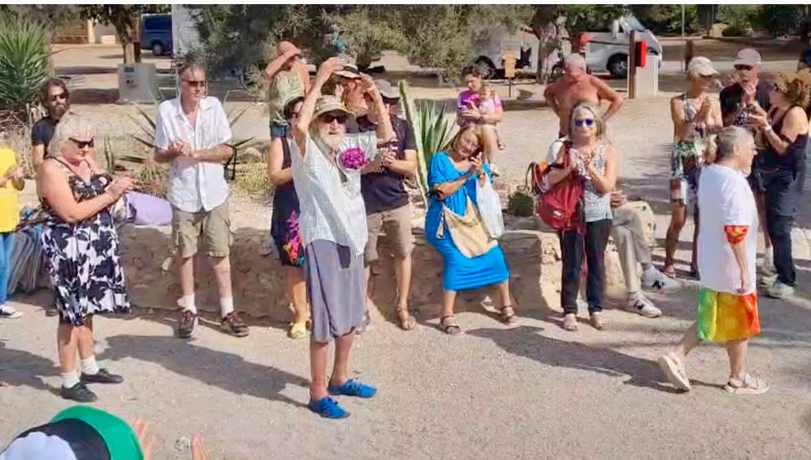 A continuación, el grupo se dirigió a la orilla de Cala Morena, donde lanzaron flores al mar en honor a Margaret, símbolo de su vida sencilla, libre y profundamente ligada a ese lugar.