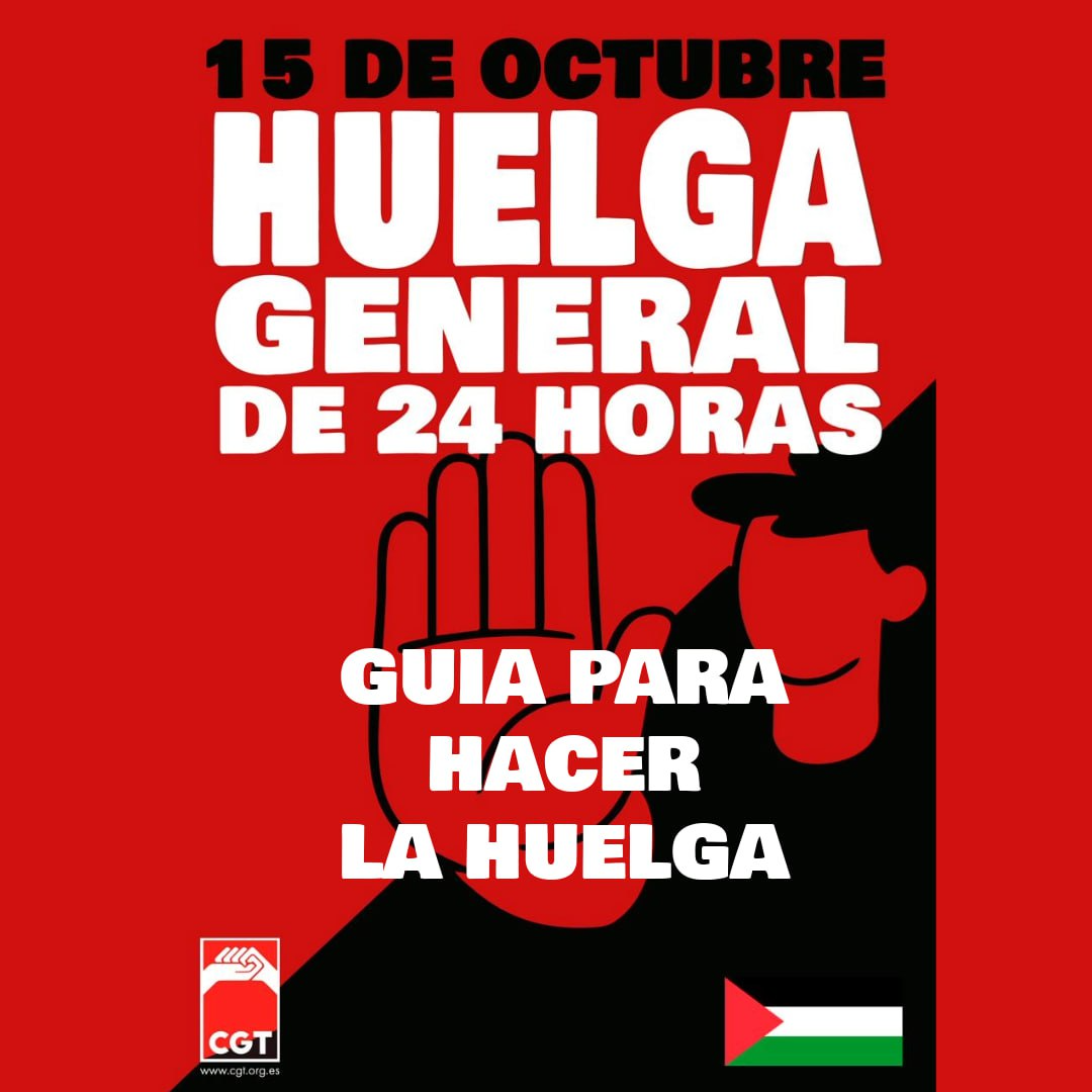 Por todo la expuesto anteriormente la CGT ha convocado una Huelga General de 24 horas a nivel estatal para el 15 de octubre. Aquí, en nuestra Región Murciana, esa Huelga está convocada el Sindicato de Estudiantes, Intersindical Región Murciana y la CGT, así como por las organizaciones RESCOP, Palestina Libre Región de Murcia y BDS Murcia.