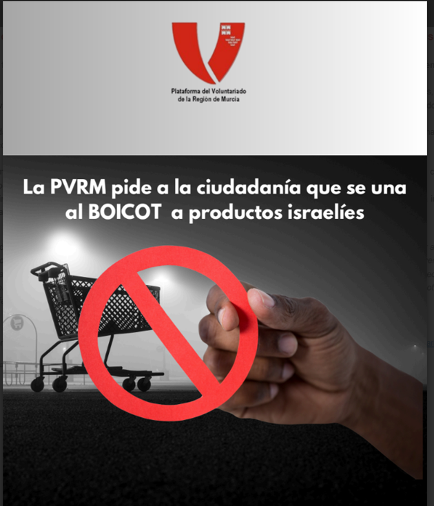 La Plataforma del Voluntariado de la Región de Murcia pide a la ciudadanía que se una al boicot de productos israelíes