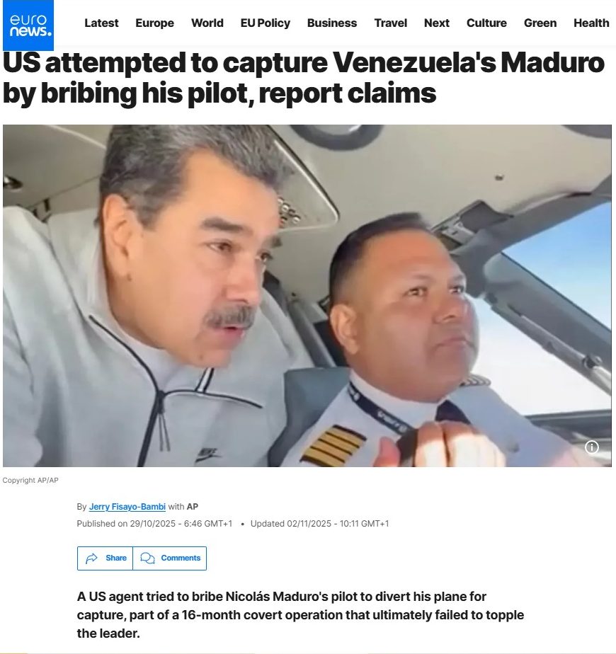 “US attempted to capture Venezuela’s Maduro by bribing his pilot, report claims” – Euronews. euronews: US attempted to capture Venezuela’s Maduro by bribing his pilot, report claims