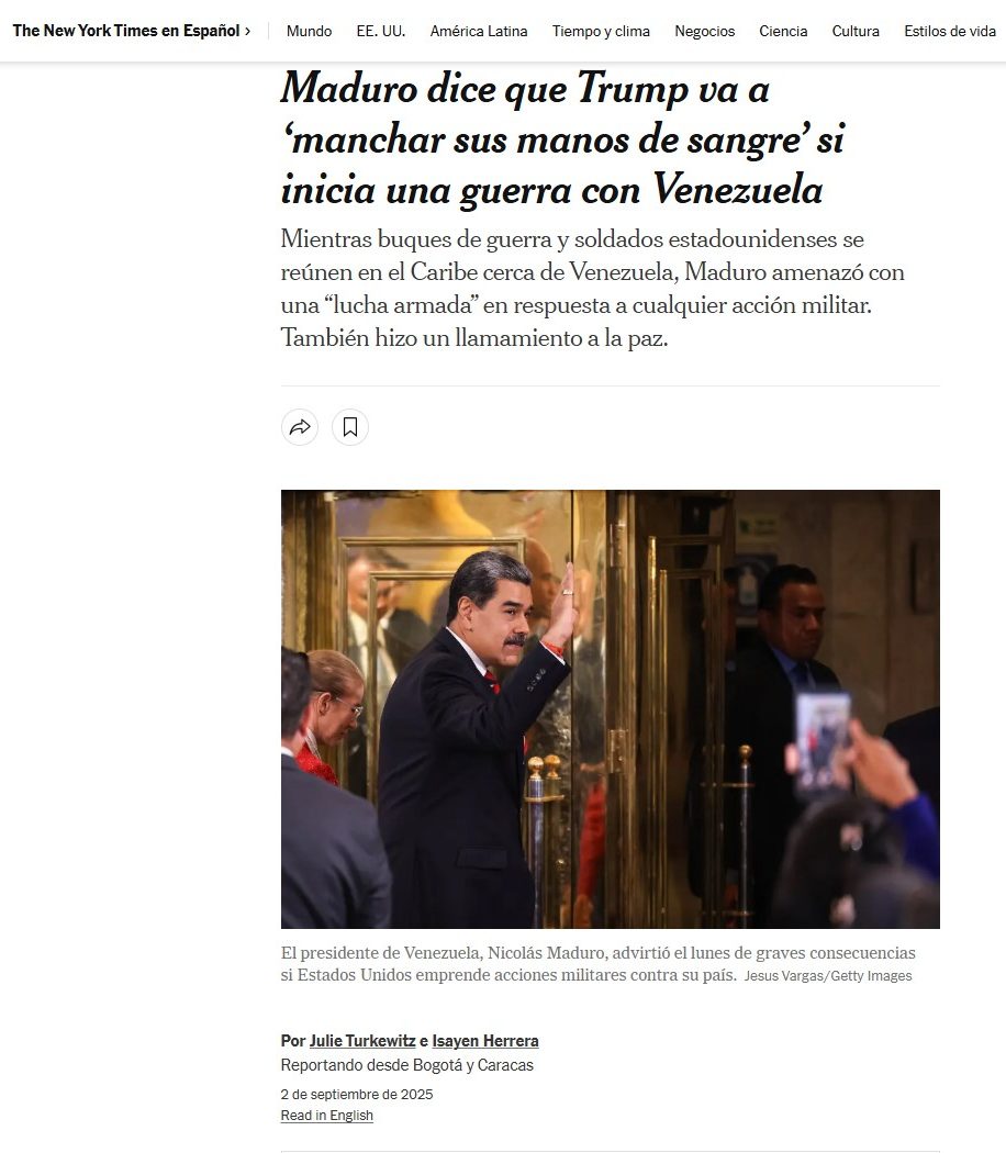 - Amenazas de respuesta: El gobierno de Maduro ha respondido con la amenaza de oponerse con «máxima rebeldía» a cualquier ataque armado, según reporta The New York Times. Maduro Tells Trump War With Venezuela Would ‘Stain Your Hands With Blood’