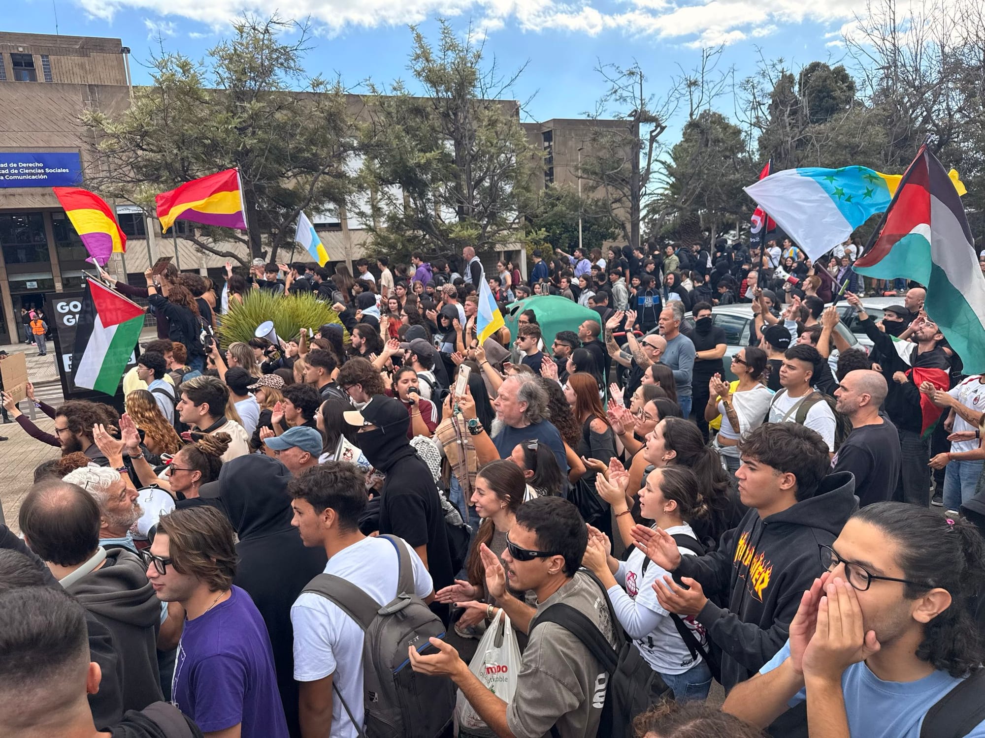 Unos 200 antifascistas se concentraron frente a la Facultad de Derecho en Santa Cruz de Tenerife para rechazar la presencia de ultraderechistas, lo que derivó en cargas policiales y la identificación de 17 participantes tras la retirada de los provocadores.