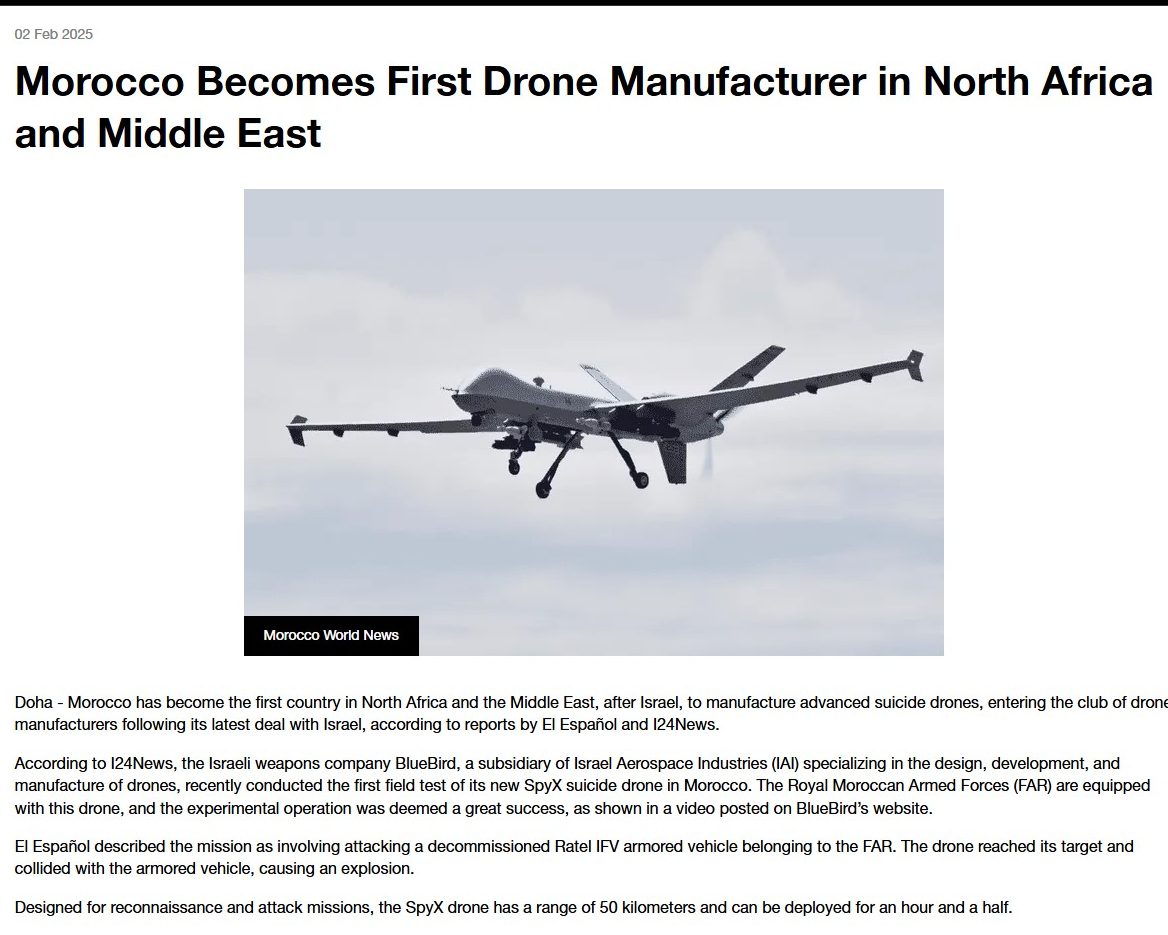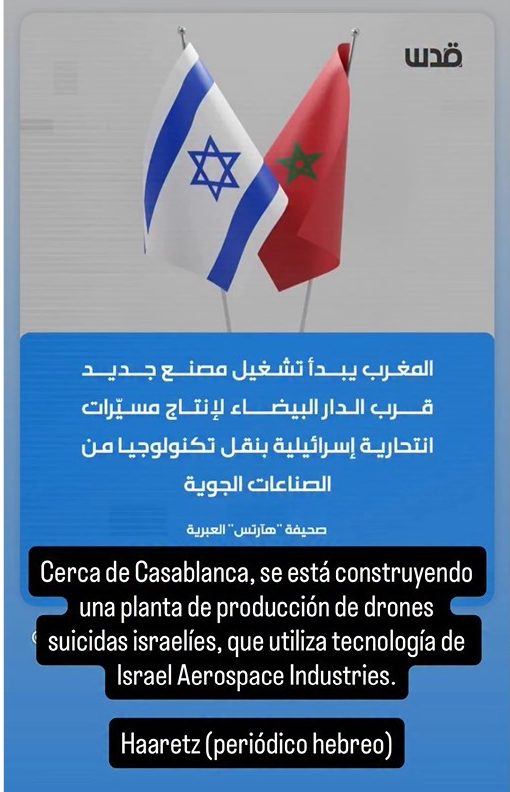 - Haaretz: «Israel installs drone factory in Morocco for loitering munitions» (15 de noviembre de 2025)