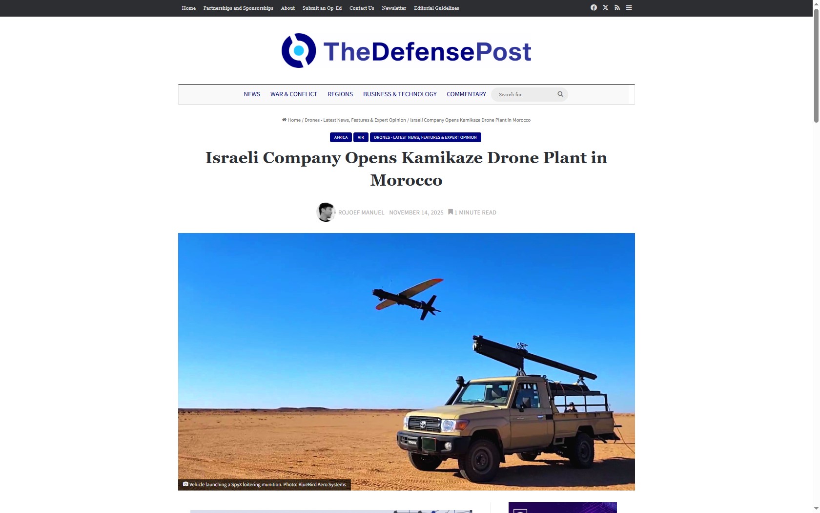 - TheDefensepost: «Israeli Company Opens Kamikaze Drone Plant in Morocco» (14 de noviembre de 2025)