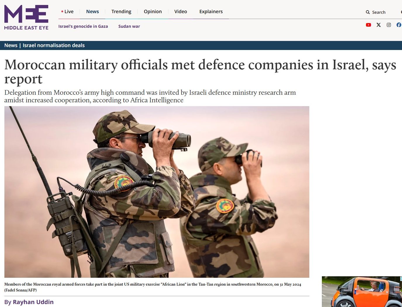 - Middle East Eye: «Moroccan military officials met defence companies in Israel« (8 de septiembre de 2025)
