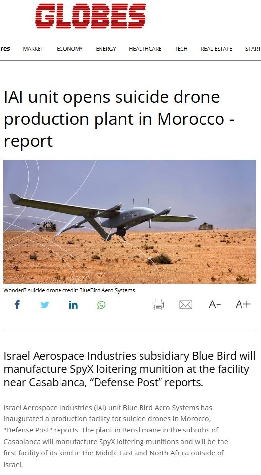 - Globes: «IAI unit opens suicide drone production plant in Morocco – report» (16 de noviembre de 2025)