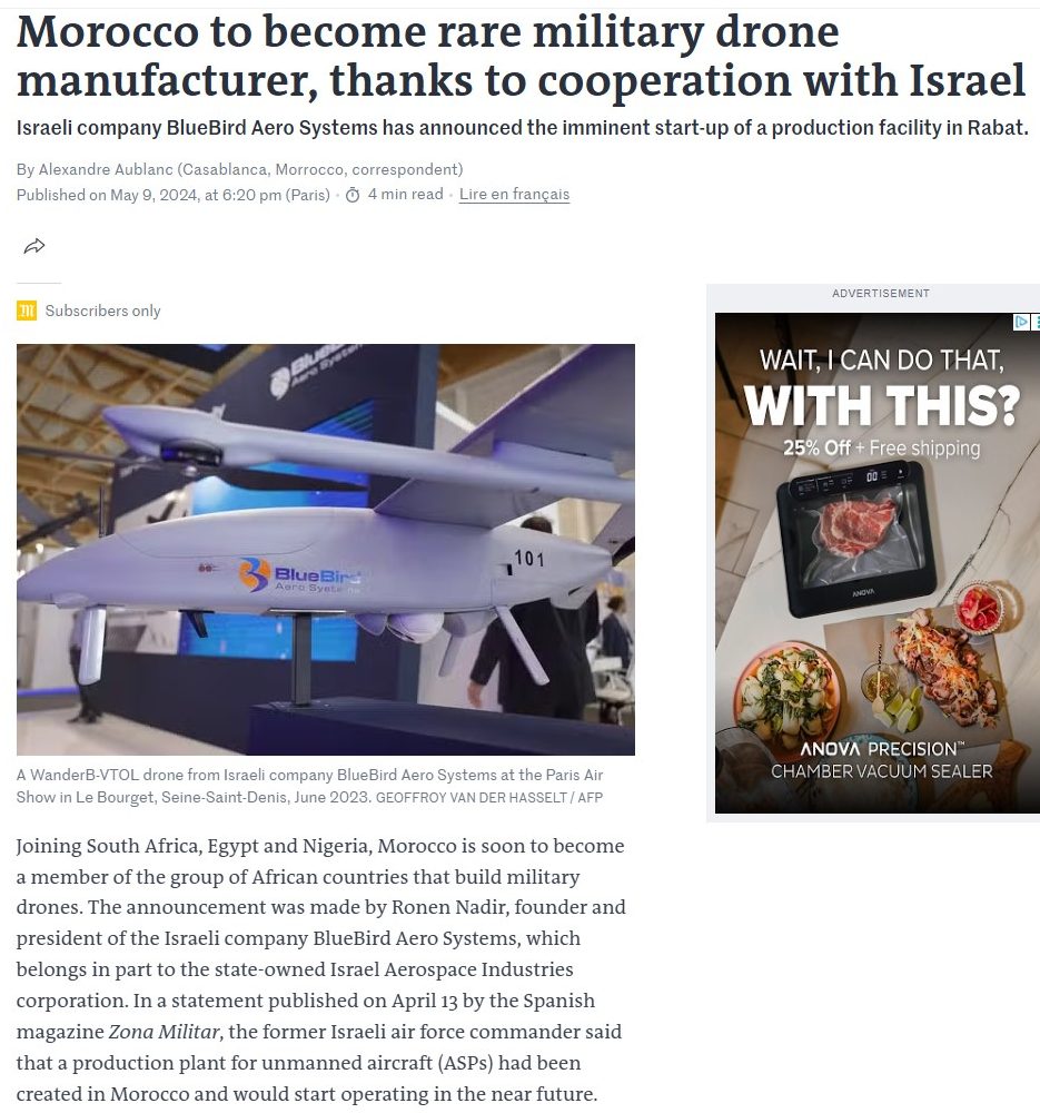 - Le Monde: «Morocco to become rare military drone manufacturer, thanks to cooperation with Israel» (9 de mayo de 2024)