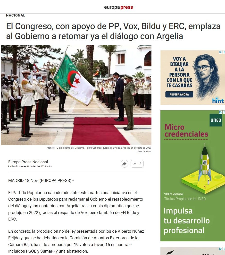 10. Posición del Congreso español sobre relaciones con Argelia