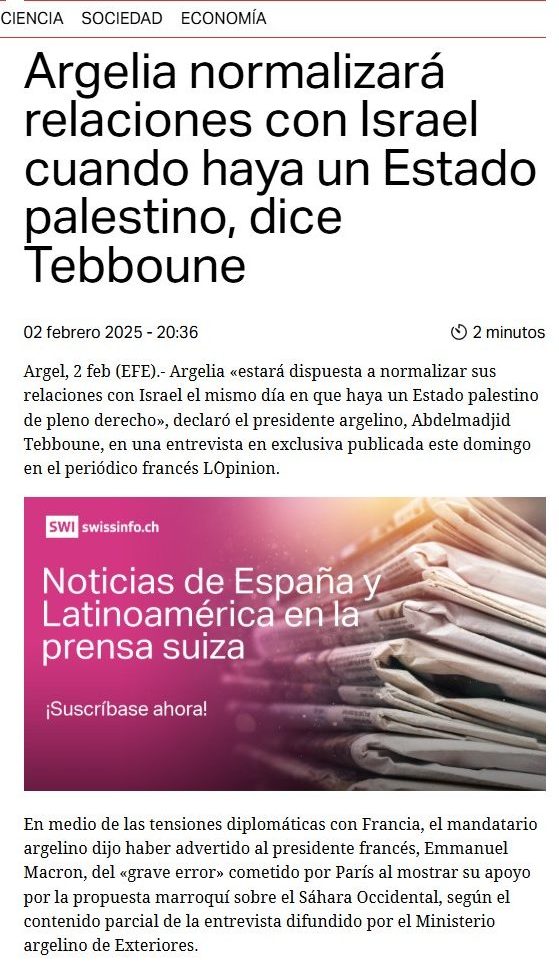 3. Declaraciones de Tebboune sobre normalización con Israel