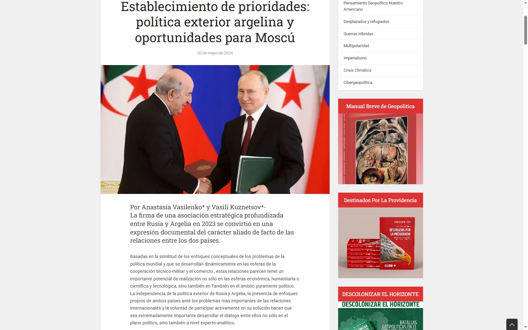 El giro pragmático de Argelia tiene significativas repercusiones en el equilibrio geopolítico regional y global: