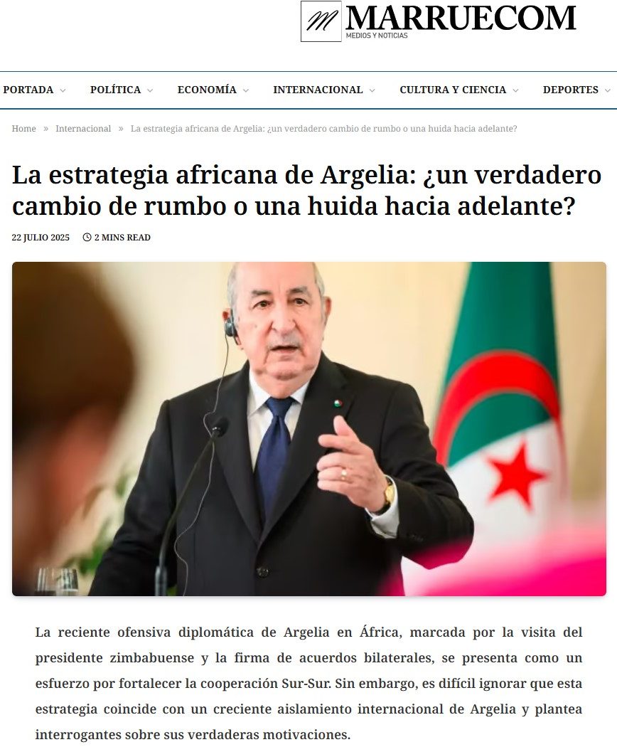 5. Reposicionamiento en África: Argelia está llevando a cabo una ofensiva diplomática en África, presentada como un esfuerzo por fortalecer la cooperación Sur-Sur. Algunos analistas interpretan esta estrategia como una respuesta al creciente aislamiento internacional de Argelia.