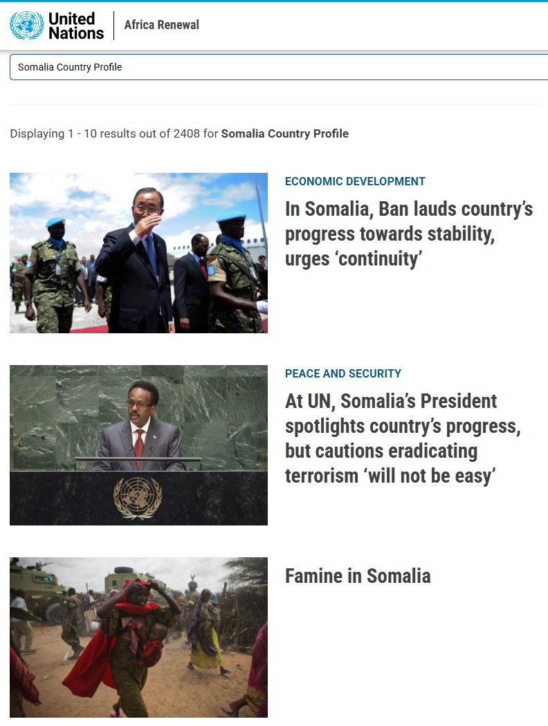 | 15 | Somalia | ONU | Somalia Country Profile | Naciones Unidas – Perfil de Somalia – |