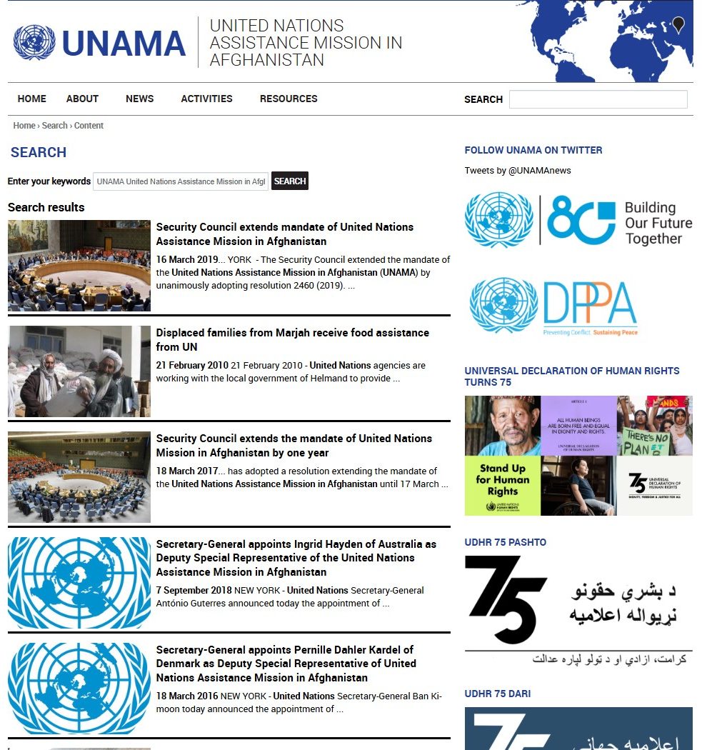 | 16 | Afganistán | ONU | UNAMA (United Nations Assistance Mission in Afghanistan) | UNAMA – United Nations Assistance Mission in Afghanistan |