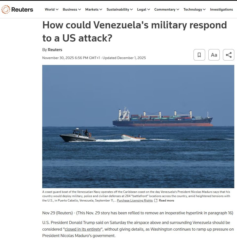 | 17 | Venezuela | Reuters | “How could Venezuela’s military respond to a US attack?” | How could Venezuela’s military respond to a US attack? |