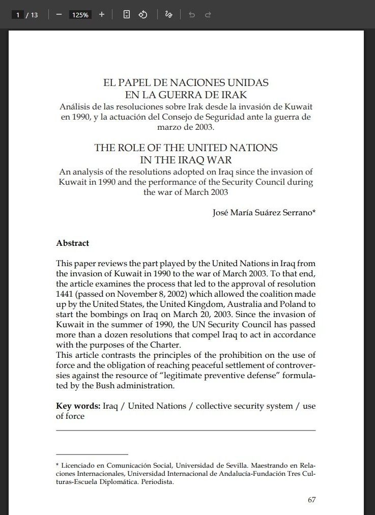 | 6 | Irak | ONU | El papel de Naciones Unidas en la guerra de Irak | El papel de Naciones Unidas en la guerra de Irak |