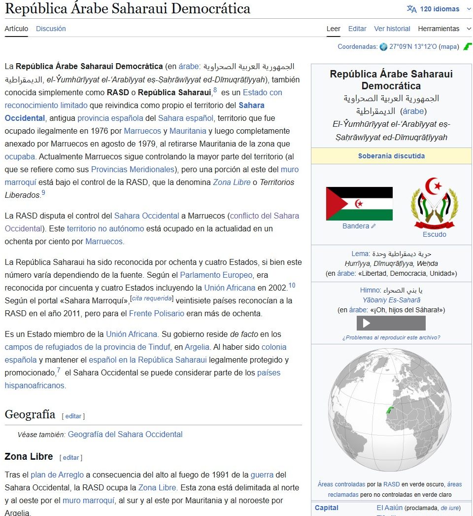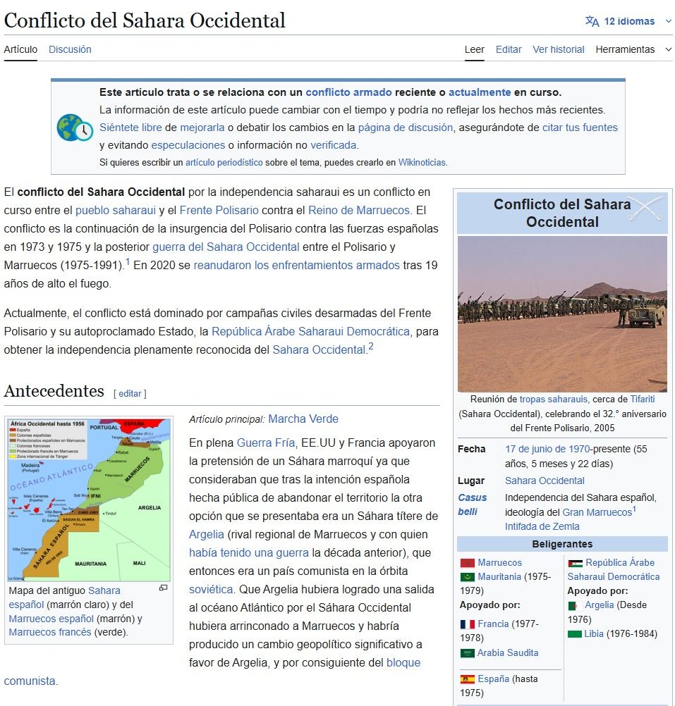 - En 1975, el Frente Polisario, reconocido internacionalmente, proclamó la República Árabe Saharaui Democrática (RASD) y rechazó la ocupación marroquí [3].