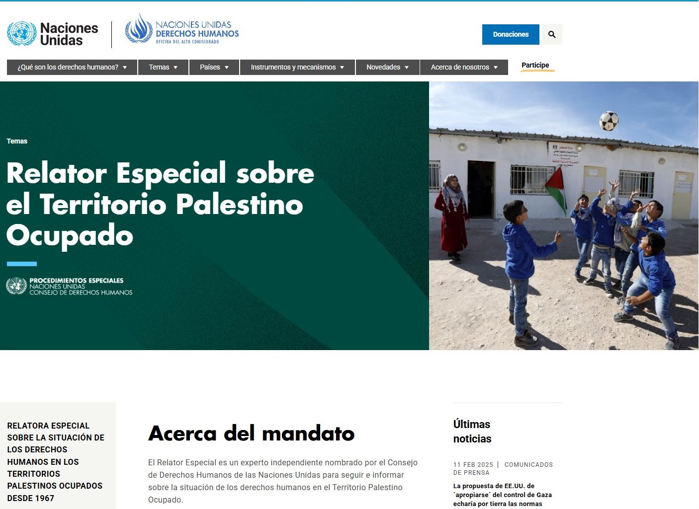 | 2 | ONU | Relator Especial sobre el Territorio Palestino Ocupado | https://www.ohchr.org/es/special-procedures/sr-palestine |