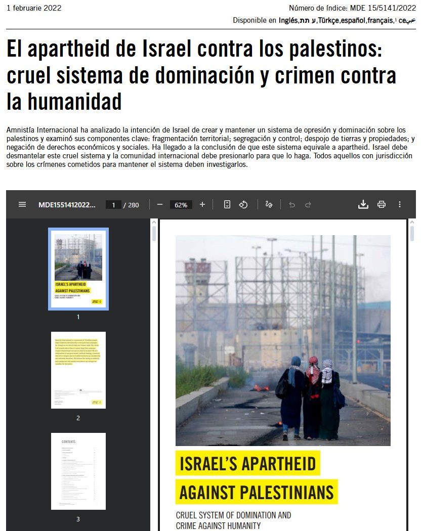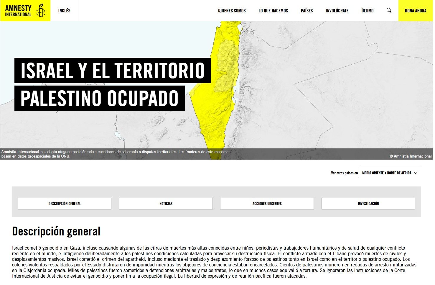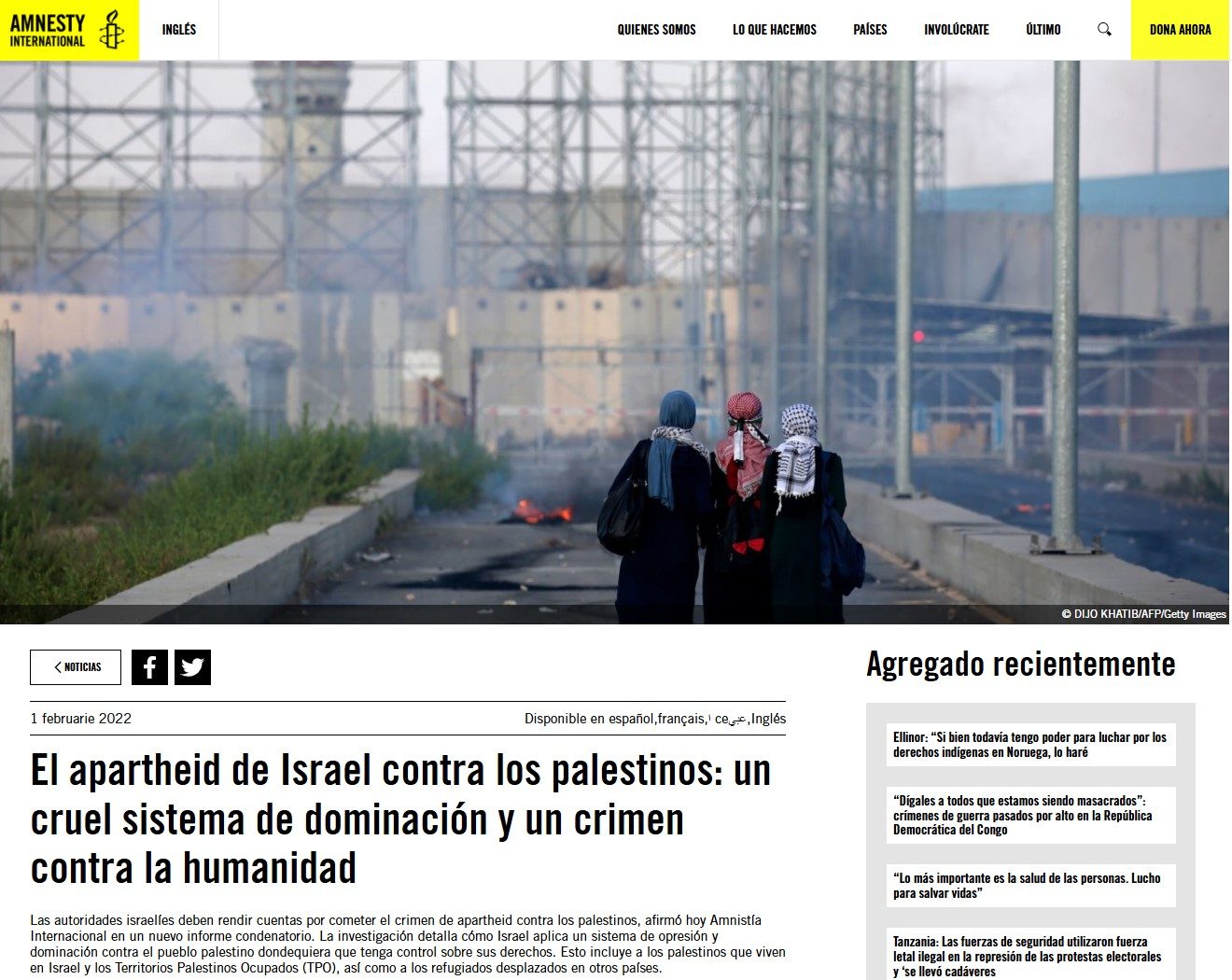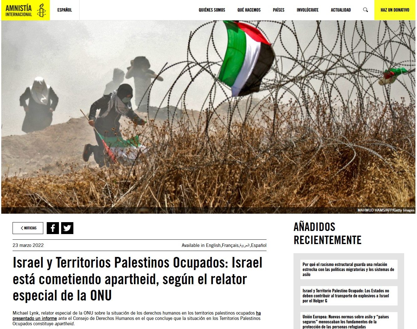 | 3 | Amnistía Internacional | Israel y Territorios Palestinos Ocupados: Israel está cometiendo apartheid, según el relator especial de la ONU | https://www.amnesty.org/es/latest/news/2022/03/israel-opt-israel-is-committing-apartheid-says-un-special-rapporteur/?utm_source=chatgpt.com |