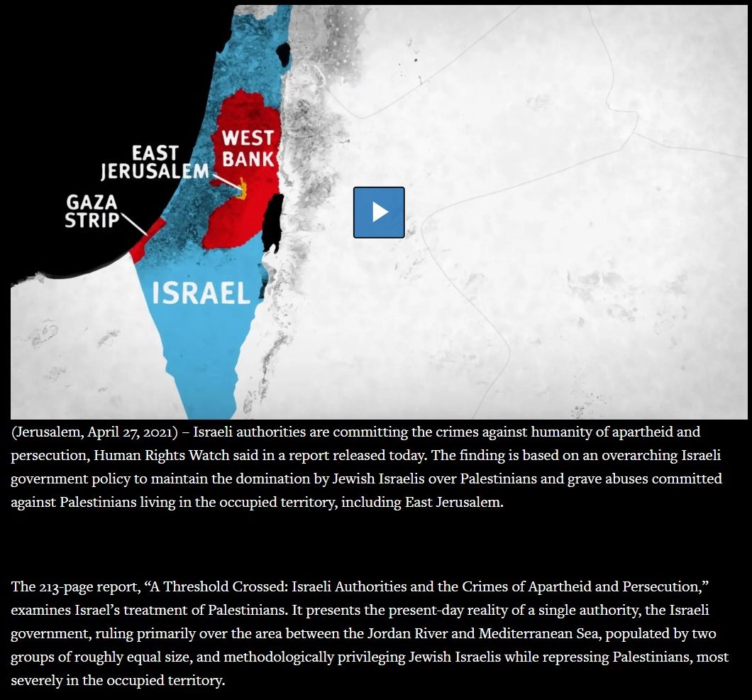 [4] Human Rights Watch– Jerusalén, 27 de abril de 2021 – Israel está cometiendo crímenes de apartheid y persecución