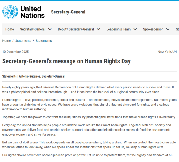 Mensaje del Secretario General con motivo del Día de los Derechos Humanos