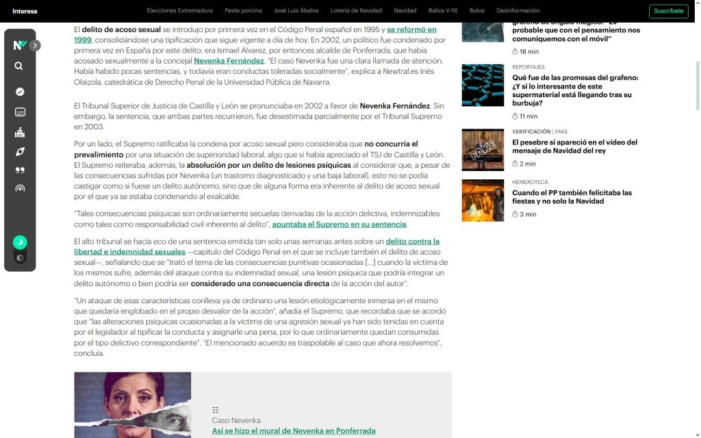 En este contexto cobra pleno sentido la recuperación audiovisual y periodística del caso, como el vídeo de RTVE Noticias titulado “ERREJÓN: La PRIMERA VEZ que un POLÍTICO fue CONDENADO por ACOSO SEXUAL fue en el CASO NEVENKA”, que puede verse aquí: