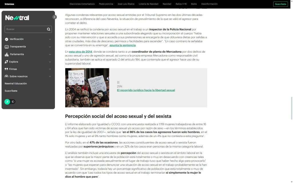 | 1 | Caso Nevenka Fernández | El antes y el después del caso Nevenka: el delito de acoso sexual en las dos últimas décadas 12 de mayo de 2021 | El antes y el después del caso Nevenka: el delito de acoso sexual en las dos últimas décadas |