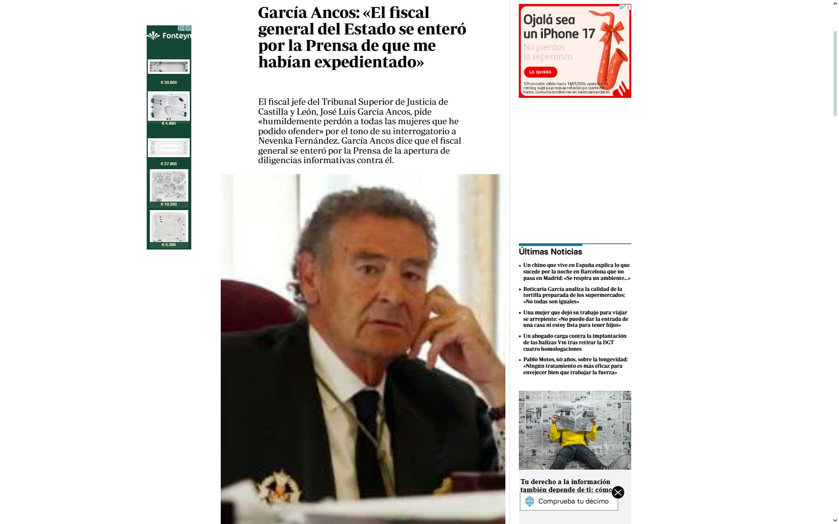 La decisión de la Fiscalía General se basa en el informe realizado por el jefe de la Inspección, Juan José Martínez Zato, por la actuación de García Ancos en el juicio por el caso Nevenka. El citado informe señala que «desde que se anunció la apertura de las citadas diligencias, lejos de guardar el prudente y obligado silencio que un fiscal debe observar a lo largo de todo el procedimiento penal», el fiscal jefe del TSJ de Castilla y León «ha concedido entrevistas o verificado ciertas declaraciones a diferentes medios de comunicación que no ha hecho sino enrarecer más el ambiente de la tensión creado tras su forma sorprendente por inusual en un miembro del ministerio público» en su interrogatorio a Nevenka Fernández, «persona presuntamente ofendida en el indicado procedimiento».