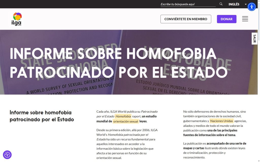 - La última actualización del ILGA World’s Homofobia patrocinada por el Estado el informe se publicó el 15 de diciembre de 2020. Descargar el ILGA World de diciembre de 2020 Homofobia patrocinada por el estado informe – Actualización de la descripción general de la legislación global en ingles | en español