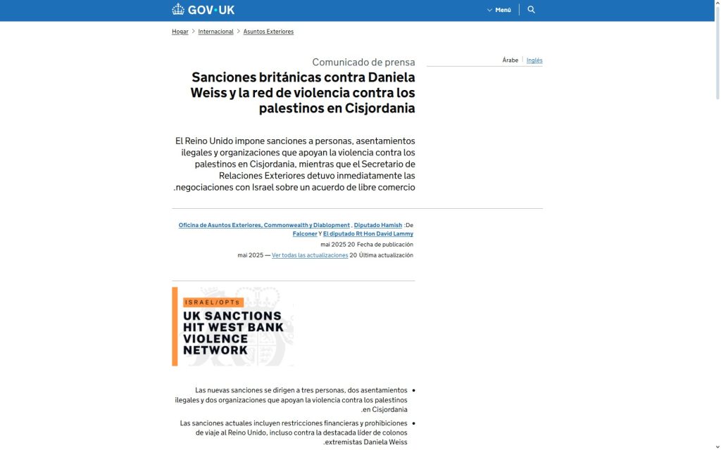 | [15] | Gobierno del Reino Unido | Mayo 2025 | Sanciones a Daniela Weiss | UK Sanctions |