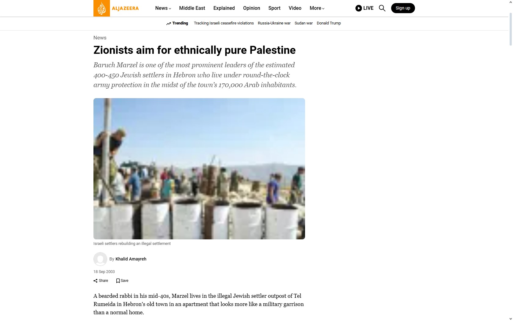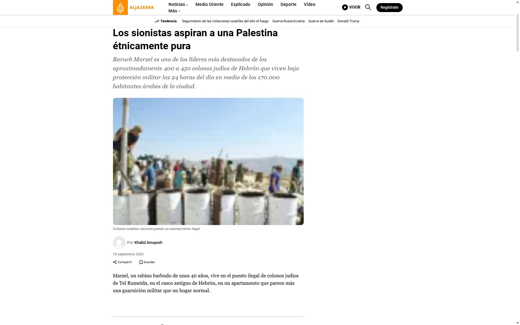 | [18] | AlJazeera | Septiembre, 2003 | Los sionistas aspiran a una Palestina étnicamente pura | Perfil Baruch Marzel |