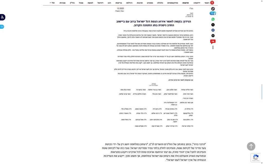 | [5] | Plataforma israelí de peticiones | 2025 | Petición para colonizar el sur de Siria | Petición electrónica |