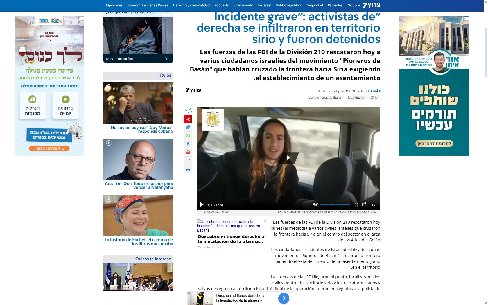 | [3] | ynet | 11.12.25 | «Nuestro derecho histórico»: los activistas que entran en Siria, Líbano y Gaza | Asentamientos israelíes |