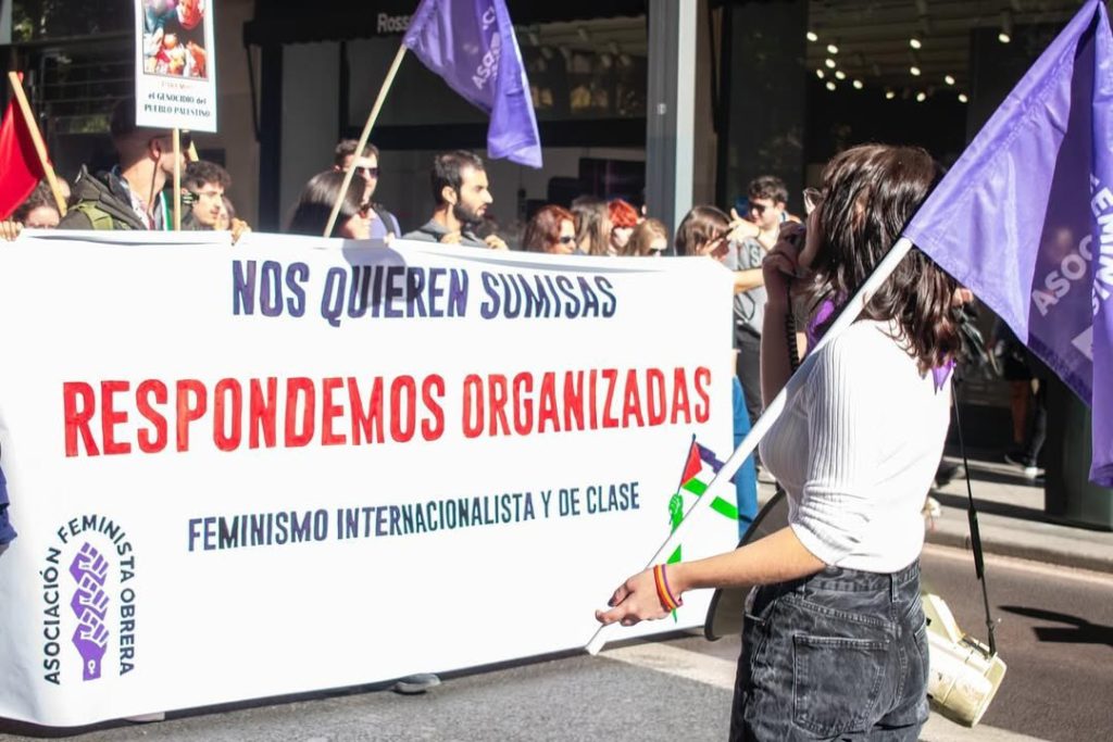Nuestro bloque, al igual que otros, nunca ha excluido a ninguna mujer, migrante, racializada o trans. Además, ha sido siempre un espacio desde el que reivindicar la solidaridad con las mujeres de los pueblos que sufren la agresión del imperialismo, como es el caso de Palestina, entre otros.