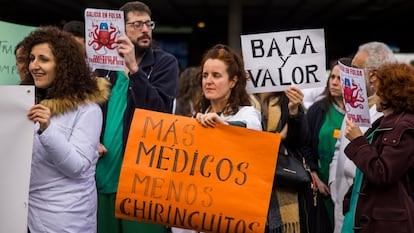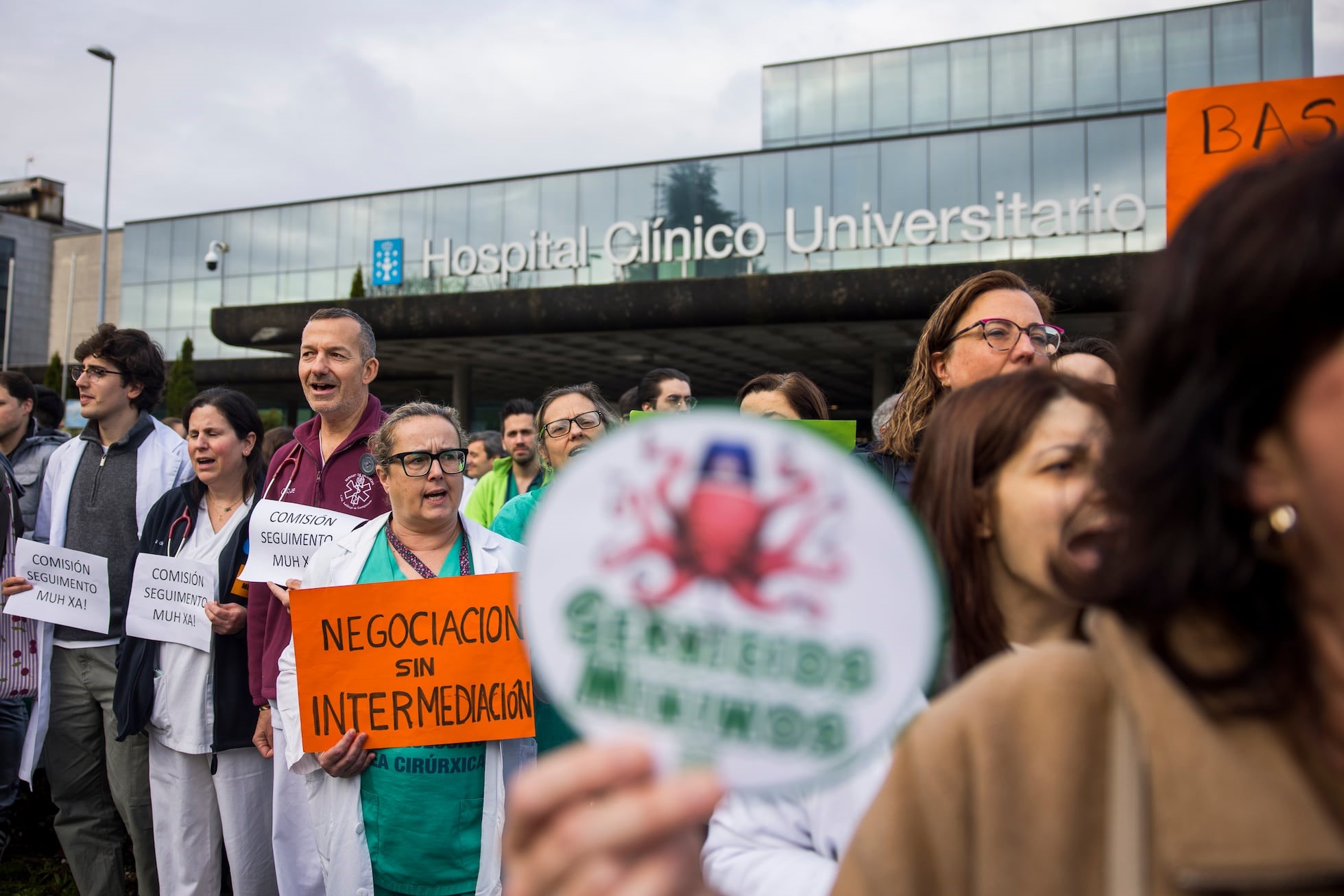 Huelga de médicos en el Centro Hospitalario Universitario de Santiago de Compostela, este miércoles.Foto: Óscar Corral