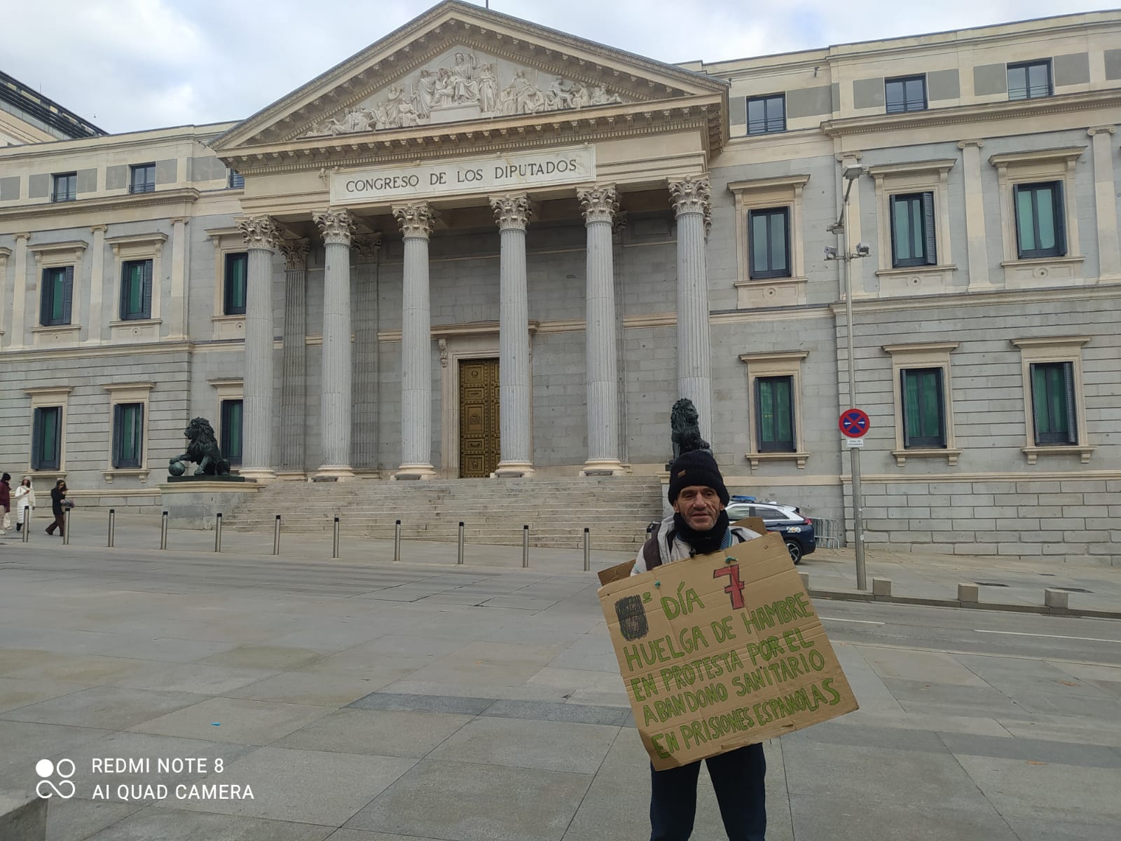 • Desde el 20 de diciembre de 2025, desarrolla una huelga de hambre en la Plaza de las Cortes, frente al Congreso de los Diputados, contra el abandono sanitario en las prisiones.​