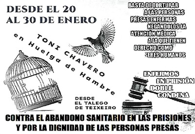 • «El compañero Toni lleva desde el día 20 en huelga de hambre en la prisión de Teixeiro.»