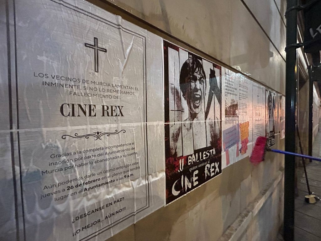 La acción culmina con un llamamiento a la ciudadanía bajo el lema #SOSCineRexMurcia, denunciando lo que consideran un relato institucional contradictorio y reclamando garantías reales para la recuperación del cine como espacio cultural vivo. El pasado jueves en su última movilización, el colectivo de defensa del espacio advirtió que de “permitir el cambio de uso supondría una pérdida irreparable para la memoria colectiva, la vida cultural del centro de Murcia y el patrimonio cinematográfico de la ciudad”.