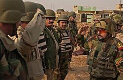 El general Riyadh Jalal Tawfiq visita a las tropas iraquíes en el puesto avanzado de combate de Intisar, en Mosul, febrero de 2008.
