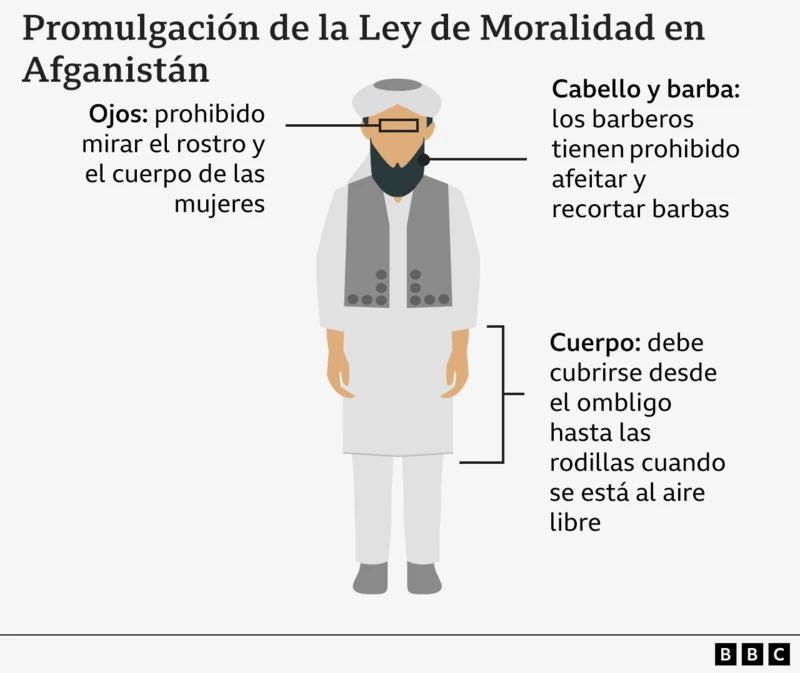 ➤ [4] 28 de agosto del 2024 – BBC NEWS MUNDO – Qué está prohibido para mujeres y hombres con las nuevas y estrictas normas impuestas en Afganistán por el Ministerio de la Moral del Talibán