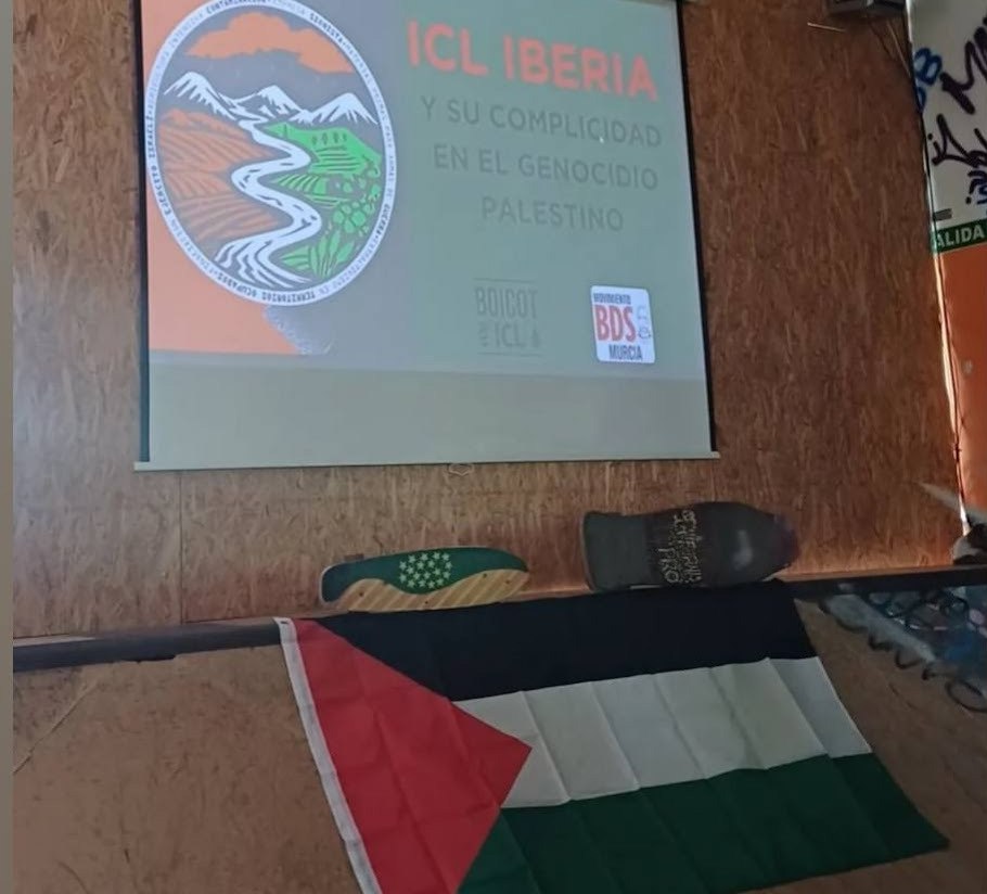 Los colectivos BDS Murcia y Boicot ICL expusieron los vínculos que la empresa asentada en Totana tiene con el ejército israelí, la fabricación de bombas y el expolio de recursos de territorios palestinos ocupados.
