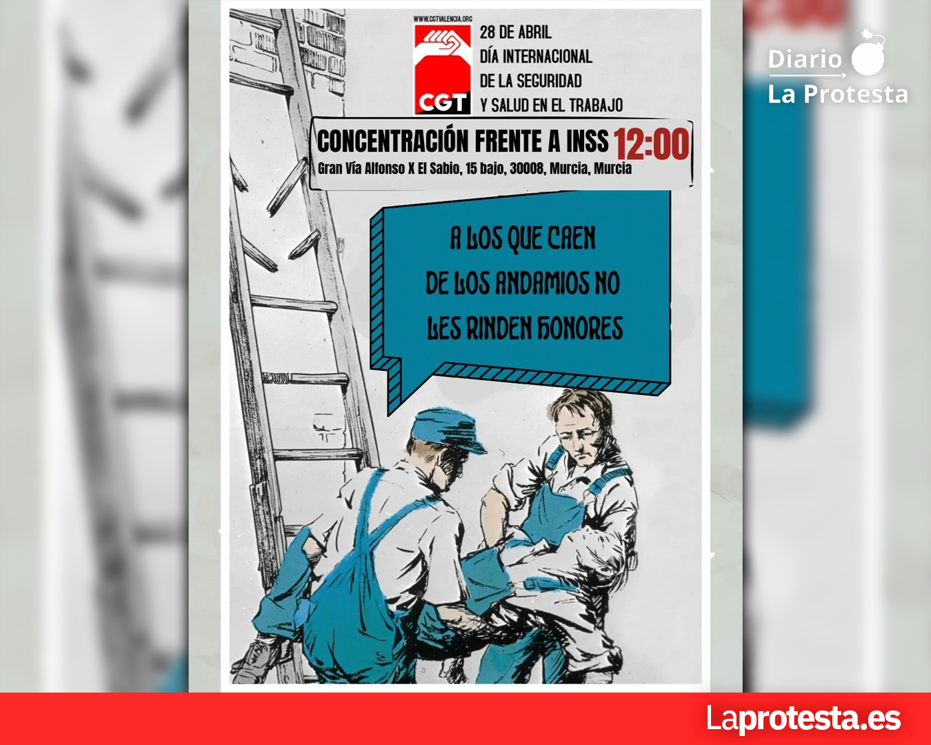 Con motivo del Día Mundial de la Seguridad y la Salud en el Trabajo, la Confederación General del Trabajo (CGT) Región Murciana convoca mañana, 28 de abril, una jornada de movilización y formación en Murcia para denunciar lo que califica como un “entramado tóxico, dañino y mortal” en el ámbito laboral.
