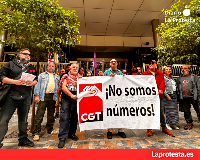 La Confederación General del Trabajo (CGT) de la Región de Murcia se ha concentrado este mediodía frente a la sede del Instituto Nacional de la Seguridad Social (INSS), coincidiendo con el Día Mundial de la Seguridad y la Salud en el Trabajo, para denunciar lo que consideran un abandono institucional hacia la clase trabajadora y exigir un cambio urgente en el modelo de gestión de las contingencias laborales.
